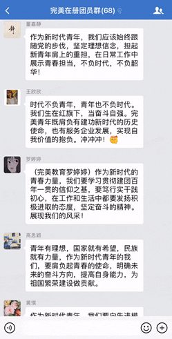 党旗所指就是团旗所向,未来属于青年,希望寄予青年。完美(中国)有限公司团员青年应始终跟随党的步伐,肩负建功新时代的历史使命,为祖国的繁荣建设添砖加瓦,深入服务企业发展,披荆斩棘,笃行实干,不负时代,不负韶华! (原标题:完美开展“党领导下的中国青年运动史”活动) 责任编辑:蓝莓 【特别声明:部分文字及图片来源于网络,仅供学习和交流使用,不具有任何商业用途,其目的在于传递更多的信息,并不代表本平台赞同其观点。版权归原作者所有,如涉版权或来源标注有误,请及时和我们取得联系,我们将迅速处理,谢谢!】 解读新闻热点、呈现敏感事件、更多独家分析,尽在以下微信公号,扫描二维码免费阅读。