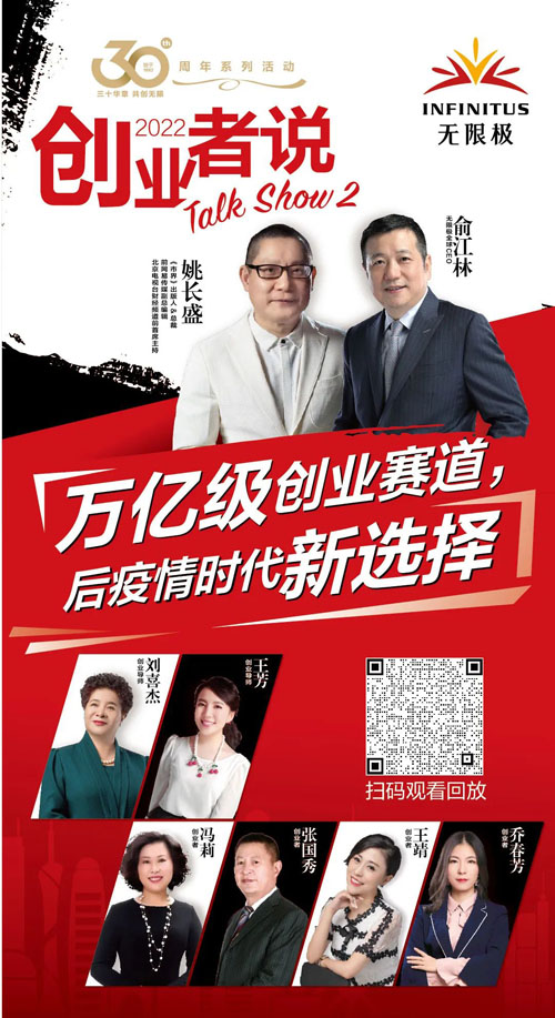 ![]() 【直报网北京7月15日讯】(无限极)7月12日,无限极创业30周年系列活动之“创业者说”第二期开播。直播间特别邀请了无限极全球CEO、无限极(中国)有限公司副董事长俞江林先生,著名财经主持人、资深传媒人、《市界》出版人姚长盛先生,就直播主题“万亿级创业赛道,后疫情时代新选择”作分享。直播间还特别邀请到无限极(中国)有限公司首席业务总监王芳女士、刘喜杰女士和几位优秀的创业者代表分享他们的创业故事。超过12.9万人次通过企业微信和无限极视频号观看了本次直播。 ![]() 扫码查看直播回放 创业者说 上一期“创业者说”我们邀请到了专家、大咖以及优秀的创业者、创业导师们,分享了在疫情和变化之下,就业趋势、就业观念有了哪些转变,并且为我们个人的就业和创业给出了相当有价值的建议。第二期“创业者说”我们聚焦在“赛道”这个话题上,因为对每一位创业者来说,选对行业,选对赛道是至关重要的。 ![]() 姚长盛先生分别从外部大环境、行业赛道、创业机会点为我们进行了精彩的分享,他认为好的赛道有很多,但是它有几个共同的特点,第一,是大家的刚需;第二个,无论如何得是一个痛点;第三个,它是自然而然的一个年轻人的选择。 ![]()