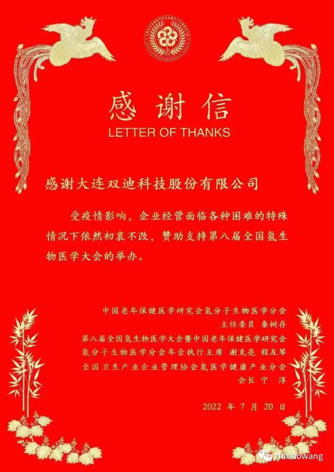 【直报网北京7月26日讯】(双迪)7月20日,双迪收到一封特殊的感谢信!第八届全国氢生物医学大会组委会对其在疫情之下,企业面临种种困难却仍能初衷不改赞助支持大会举办表示感谢!