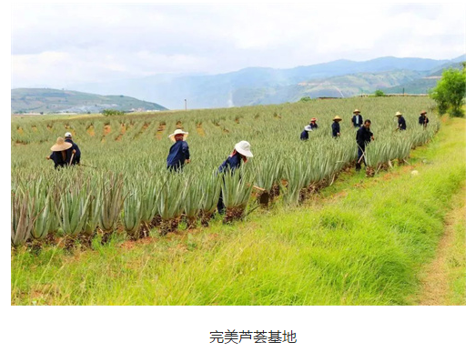 完美芦荟胶家喻户晓。完美公司在成立之初,就确立了以芦荟系列产品为主要发展方向,是国内较早引进和开发芦荟产品的企业之一。在众多原料中,完美公司选取库拉索芦荟,并在“中国芦荟之乡”云南省元江县打造了数千亩种植基地,2018年与云南万绿生物股份有限公司签署战略合作协议,共建云南特色植物资源研发平台。在云南当地,芦荟种植、加工均是支柱型产业,也是群众就业、致富的重要途径。 近年来,完美公司陆续在全国闻名的玉米种植区建设玉米种植基地、在湖北荆门建设南瓜种植基地,因地制宜,推动当地优势产业的发展,探索出产业扶贫新路径。