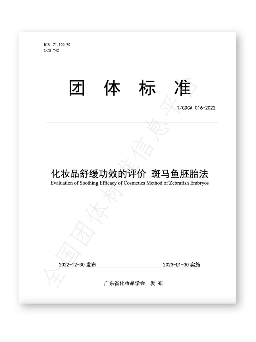 斑马鱼拥有与人类高度相似的基因,所以它在基因表达和蛋白质功能上与人类非常相似[1]。斑马鱼胚胎具有极强的敏感性,胚胎通体透明,便于直接观察到外源物质对鱼体内器官的影响。除此之外,斑马鱼还具有超强的再生能力,因此,实验室常常用斑马鱼胚法测定化妆品功效。 虽然斑马鱼胚法在测定化妆品功效方面具有显着作用,但是行业内一直缺乏统一的测试方法标准,导致化妆品质量良莠不齐。 为了更好地规范市场秩序,近日,无限极(中国)有限公司联合广州市微生物研究所有限公司、广东省科学院生物与医学工程研究所等单位,共同编写了《化妆品 紧致功效的测定 斑马鱼胚法》、《化妆品 修复功效的测定 斑马鱼胚法》、《化妆品 抗皱功效的测定 斑马鱼胚法》等3项团体标准,还与广东工业大学等单位联合开展团标的数据验证工作,参与编制了《化妆品舒缓功效的评价 斑马鱼胚法》团体标准。