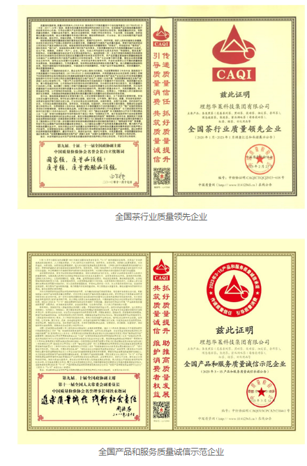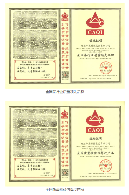【直报网北京3月16日讯】(理想华莱)百舸争流千帆竞,借海扬帆奋者先。近日,理想华莱凭借优质的产品及品牌形象,经过严格的评选和考核,被中国质量检验协会授予“全国茶行业质量领先企业”“全国产品和服务质量诚信示范企业”“全国茶行业质量领先品牌”“全国质量检验信得过产品”等四项荣誉。