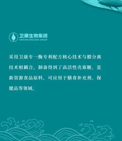 为者常成 做行业的“开创者” 为者常成,行者常至,从研发出壳寡糖生物降解酶到成为中国壳寡糖产业领军企业,卫康在中国壳寡糖产业发展的每一个阶段历程中,竖立起了一座“卫康引擎”。 卫康以甲壳素为起点,联合上海海洋大学和多家科研机构,合力筛选出了生产壳寡糖生物降解酶-SRDH2菌株。SRDH2菌株的发现,实现了甲壳素及其衍生物小分子制备工程和糖生物医药工程的历史性突破。 利用生物酶解法高效制备壳寡糖技术,卫康不仅为自己的产业打通了壳寡糖生产的全链条工艺路线,还具备了自主研发壳寡糖海洋生物技术,此开创成果更是奠定了卫康在中国壳寡糖行业的地位。 砥砺深耕 做行业的“护航者” 虽然壳寡糖应用领域广泛,市场前景较好,但是原料来源多样、标准不够统一却是阻碍壳寡糖行业进一步发展的主要问题。 作为壳寡糖行业的中流砥柱,卫康以护航者的姿态全程参与并见证了《壳寡糖》行业标准(2013-1877T-QB)的起草制订以及壳寡糖团体标准的立项与制定。 可以说,卫康定义了壳寡糖的行业标准,推动了行业标准化、规范化进程,从而填补了此前国内壳寡糖行业中相关标准的空白,使壳寡糖的生产、销售及检测等有据可依,卫康的保驾护航,促进了壳寡糖行业的健康发展。