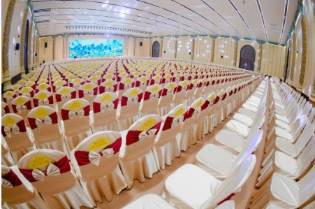 作为业界罕见的单体会议中心,总面积超过5000平米的宝鼎国际会议中心,经过为期一年多的改造装修,整体外观恢弘雄伟,由大型会议厅及会客厅、VIP会议厅、多媒体会议厅等四大板块组成,可同时举办3000人以上的大型学习、培训,功能完善,设施一流,配套齐全,采用业内公认的顶级配置,运用大量高科技新型建材;从园林造景、建筑规划、空间布局到艺术风格,从设计到施工,从硬件到软件,产业区的每个细节均经过精心设计和打磨,由极其苛刻的技术要求和世代传承的精湛技艺所造就,倾注了春芝堂人的心血,包含着董事长对春芝堂大健康事业的规划和希望,展示着春芝堂高品位、高规格的综合实力,体现着春芝堂对品质精益求精的执着追求。