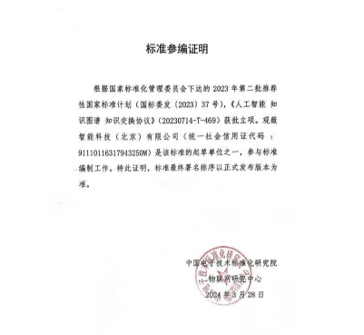 标准是世界通用语言,也是行业实现持续发展和打造具有国际竞争力产业集群的重要基础设施。在中国电子技术标准化研究院依托全国信标委人工智能分委会知识图谱工作组主办的《人工智能 知识图谱 知识交换协议》国家标准编制过程中,作为AI+大健康的代表企业,观薇智能积极为此项国家标准编制建言献策,以实际行动助力行业发展。