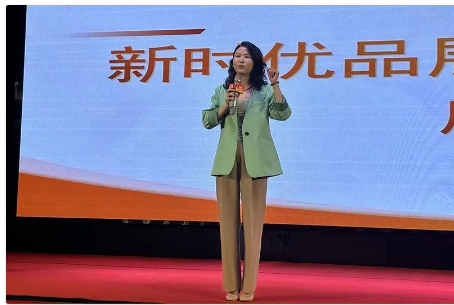 优秀新时优品健康管理服务中心负责人冯伟华分享了新时优品商业模式的资源优势和核心价值,号召大家加快社区站建设和店铺升级,抢占市场发展先机。