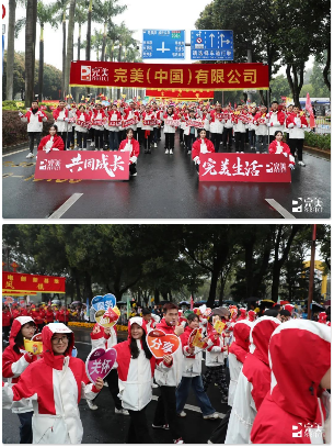 上午10时,巡游活动起步,伴随着熟悉的慈善万人行主题曲,在完美公司CEO彭志红带领下,由80多名完美公司员工组成的爱心巡游方队,欢快地摇动着手卡与旗帜,齐声高喊口号“共同成长,完美生活;百年完美,全球完美”,与200多支巡游队伍一道,沿着兴中道阔步向前,向广大市民展现高质量发展成果和向上向善的精神风貌,成为此次慈善万人行活动中一抹亮眼的“完美红”风景。