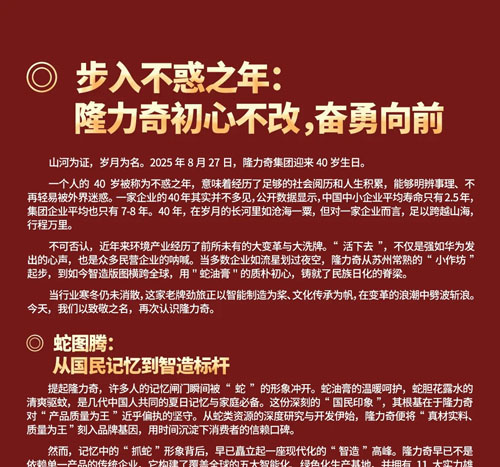 【直报网北京8月27日讯】(隆力奇) ![]() ![]() ![]() ![]() ![]() ![]() ![]() ![]() ![]() ![]() (原标题:隆力奇:39载征程筑基石 40年聚才凝发展) 责任编辑:一一 【特别声明:部分文字及图片来源于网络,仅供学习和交流使用,不具有任何商业用途,其目的在于传递更多的信息,并不代表本平台赞同其观点。版权归原作者所有,如涉版权或来源标注有误,请及时和我们取得联系,我们将迅速处理,谢谢!】 解读新闻热点、呈现敏感事件、更多独家分析,尽在以下微信公号,扫描二维码免费阅读。