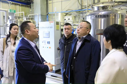 高炜总裁向鲍九生书记介绍安发新西兰发酵车间 在座谈中,高炜总裁介绍了安发国际近年来在生物科技、健康产业及全球市场布局方面的战略与成果,并表达了与吉林侨界携手,推动中医药与现代健康科技融合的意愿。