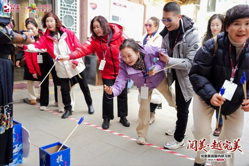 大同古城 国风团建 同心共创 ![]() 完美精英们在古城开展了一场国风团建,投壶的专注、摔方宝的激情、“飞鸽传书”的默契,大家在欢声笑语中拉近了彼此的距离,凝聚了团队力量。 ![]() ![]() 大家还深入大同古城,先后参观了千年古刹华严寺与瑰丽恢弘的九龙壁,在厚重的历史积淀与精湛的建筑艺术中,感悟恒久之美与匠心传承。 ![]() 初冬的山西大同,静默的城墙与流转的时光相映成趣。大家信步于传统与潮流交织的东南邑历史街区,为此次大同之行画上了一个意犹未尽的句点。 美美与共,天下大同! 此次完美美容研习班大同站圆满举办,完美人同心、同欲、同行,大家在此共同成长,追寻完美生活。让我们携手同行,再创辉煌,明年邮轮见!