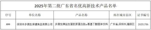 喜报 益生菌胶原蛋白肽 γ-氨基丁酸固体饮料 被评为2025年 广东省名优高新技术产品