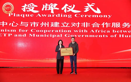 仪式环节亮点纷呈,一系列重要举措落地实施,为中非合作注入新活力。活动现场,不仅举行了《中非经贸》杂志全球首发仪式和中非医卫健康合作促进委员会揭牌仪式,湘潭市商务局、常德市商务局还分别向研究会对非交流中心与研究会法律服务中心授予市州对非经贸合作促进联络点的牌匾。这一系列举措标志着湖南对非合作服务向精细化、地方化拓展,为中非经贸合作构建了多元的服务载体。