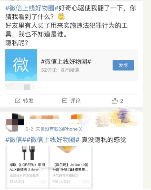 由此可见,用户个人的购物信息是“好物圈”信息分发的内容来源,不过该推荐逻辑极易产生隐私纠纷问题。