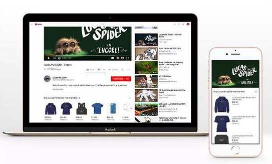 与亚马逊自营自建电商生态不同,谷歌在购物上既没有构建供应链,也无需库存、物流等基础设施投入,主要是以流量为入口,提供平台,将本地商家、速递服务、会员系统联系起来,以低风险的方式布局电商,但这一策略也有可能使平台在交易中过于被动,对于供货商家、物流缺乏有效管控。 2 YouTube 社交电商 作为家喻户晓的UGC视频社区,YouTube平台方、KOL、广告主、品牌方、平台间三者之间的循环在自然形成、平台干预下趋于成熟形态。2018年,收入超过六位数的YouTube频道数量增长了40%以上;2019年,YouTube越发在成为影响力营销、社交电商中的标杆案例。 早前,为粉丝数较高的Up主推行会员制,并与衍生品销售平台Teespring合作,帮助粉丝数超过一万的Up主开展衍生品销售业务,在视频正下方“衍生货架”(Merch Shelf)上,提供t恤、帽子、手机壳等20多种的衍生品,供粉丝购买;这一功能也首次将YouTube打造成可供购物的平台。