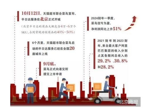 “半日达”北京开城 菜鸟将半日达时效“卷”向了北京。10月12日,天猫超市联合菜鸟宣布,正式在北京启动半日达服务。作为淘天集团与菜鸟联合打造的物流项目,开通半日达,意味着北京的消费者也能够在天猫超市中体验到“上午12点前下单,下午到;半夜12点前下单,次日上午到”的购买模式。 同时,在北京之外,苏州、无锡、合肥、郑州和泉州等城市也同步开通了半日达,加上从今年3月底开始陆续开出的杭州、上海、广州、深圳等城市,6个月里,天猫超市联合菜鸟启动的半日达服务已经在全国20座城市上线。 “这样的复制速度是相当快的。”在全国20城全面上线发布会上,菜鸟集团副总裁、国内供应链事业部总经理帅勇透露,为保障北京的半日达服务的履约确定性,除了此前覆盖北京地区天猫超市业务的天津武清仓外,菜鸟还在北京启用了顺义专仓。 勇坦言,半日达对菜鸟的仓配链接带来了很大的挑战。“我们需要尽可能地缩短链路来提高时效。”他表示,目前,消费者下单之后,分拣员会在大仓内一站式打包完毕,送至大仓旁的分拨中心,然后直接送至消费者收货地址附近的站点进行末端配送。 北京商报记者在淘宝App中的天猫超市板块看到,已经有不少商品打上了“半日达”的绿色标识。“当前能够覆盖北京半日达的商品大概包含4万-6万个SKU,占到常规动销商品的40%-50%。”天猫超市半日达项目负责人应鑫达向北京商报记者表示,天猫超市根据商品的日销、动销、周转数据,平均每两周会进行一次轮转。 与淘天紧密配合 提交招股书后火速再开新城,作为阿里巴巴进行“1+6+N”拆分之后首个开启IPO进程的业务集团,菜鸟似乎有点儿急了。 9月底,在与速卖通共同宣布“全球五日达”上线的当天,港交所官网显示,菜鸟已正式向港交所提交上市申请。而根据招股书披露的数据,菜鸟确实有“先飞”的底气。招股书数据显示,菜鸟在截至每年3月31日的2021-2023三个财年的营收分别为527.3亿元、668.7亿元、778亿元,近三年的复合增长率达到21%。 但是,营收高速增长的另一面,是菜鸟的巨额投入。根据招股书数据,在近三个财年,菜鸟的亏损额分别是12.53亿元、13.04亿元及17.01亿元,到了截至今年6月31日的2024财年一季度,菜鸟才终于扭亏为盈,实现净利润同比上升51%的增速。 在菜鸟向资本市场所讲述的故事中,相比日均履约超过400万个包裹、全年15亿件的跨境和国际业务包裹量,菜鸟在国内物流市场中的成绩稍显逊色。招股书数据显示,2021-2023财年,国际物流收入占比始终高于国内物流收入,截至2023财年,菜鸟的国际物流收入达到368.5亿元,占总收入47.4%,而同期国内物流收入则为359.6亿元,占总收入46.2%。 “根据招股书表现出来的内容,菜鸟在国际市场中的故事还是要亮眼许多,目前菜鸟在国内物流市场中仍然和淘天保持联手、密切配合。”快递物流专家、贯铄资本CEO赵小敏说道。根据招股书披露内容,从2021财年到2023财年,菜鸟来自前五大客户的收入分别占各期间总收入的34.4%、34.8%、32.3%,而来自其最大客户阿里巴巴集团的收入就分别占到了其各期间总收入的29.2%、30.8%和28.2%。 眼下,菜鸟不得不考虑再为自己创造更多的外部客户来源。一个关键的信号是,今年6月,菜鸟宣布推出自营快递业务菜鸟速递,并同时上线自营的仓配产品。这也意味着,菜鸟也在进一步打造自身独立的硬件基础,提升独立面对市场的能力。 网络还需夯实 然而,菜鸟拓展自营物流的过程,也是履约成本与回报率拉锯的过程,这一定程度上也影响了菜鸟业务铺开的速度。 “在做半日达项目的时候,我们会拉长投资回报周期来看。”应鑫达告诉北京商报记者,在选择城市进行前期成本测算的时候,会将该城市预期的逐年订单增长和物流成本节降比进行比较,“如果五年无法回本,那就不会在这个城市开城”。 另一方面,应鑫达也承认,在一个城市新增仓库是“一个非常严谨的事情”。“我们会考虑人员配比以及其他的成本问题,之前也存在过在部分城市新增仓库,但运营一段时间后发现它没有达到预期就关仓的情况。”应鑫达向北京商报记者透露。 根据菜鸟公布的数据,目前,菜鸟在全国有超过230个仓库,总面积超过3000万平方米。而菜鸟速递拥有13个一级分拨中心、7500多条运输线路、5000多个终端站点和5.3万名快递员。 但相比同行,菜鸟在国内基建上的资源投入还是后进生。例如大搞仓网的京东物流。截至2023年上半年,其在全国运营仓库数量已经超过了1600个,含云仓在内的仓储网络总管理面积超过3200万平方米,一线员工人数超41万名。而另一位直营系竞争对手顺丰在国内的运输线路超过15万条,末端配送车辆超过19万辆,拥有99.7%的地级覆盖率。 “菜鸟毕竟有一段由轻资产转向重资产运营方式的经历,对于车辆、园区建设、道路体系和网络仓储覆盖都还需要一段时间来发展。”赵小敏表示,从当前的国内市场竞争情况出发,菜鸟仍然应该先将国内的网络夯实。 从这个角度看,赵小敏认为,菜鸟仍然应该和淘天保持联动。”“只有借此机会来提升市场规模,拓展自身的业务空间,菜鸟的国内故事才能更有想象力。”赵小敏说道。