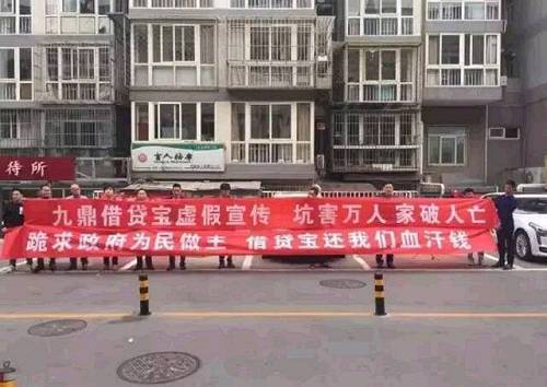 【直报网北京10月24日讯】(网易财经)近日,一批自称“借贷宝受害者”的投资人陆续赶至北京,聚集在一起维权。有投资人透露,预计规模将超1000人。 他们相互之间称为“宝友”,多位“宝友”表示,从今年5月份开始,借贷宝爆发大面积逾期,他们借出的贷款全部逾期,每天只能看着管理费不断增加,无法收回。 据了解,20日,多位借贷宝用户在北京东城区某小区的招待所门前挂出条幅,横幅上写道:“九鼎借贷宝虚假宣传坑害万人家破人亡”、“借贷宝还我们血汗钱”等。 据网易财经,在北京东城区某小区的招待所内,来自山东、江西、重庆等地的借贷宝用户聚集在这里,这个地下室中的招待所,成了他们在京的汇合点,几天之内,有人离开,也有人陆续到来。