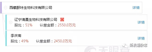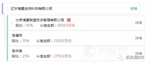 李庆南入股清晨生物,持股25% 新浪潮从天眼查看到,目前的辽宁清晨生物科技公司,其股东分别为北京清晨联盟投资管理有限公司、自然人李福祥、自然人李庆南,其中李庆南以认缴2750万元的数额,持股25%。 ![]() 新浪潮从企查查获悉,三家股东的认缴日期均为2038年8月21日,前两者分别于2011年9月29日实缴350万元和150万元,李庆南实缴信息不详。 ![]() 新浪潮进一步从企查查了解到,今年10月11日,清晨生物刚刚进行了投资人和注册资本变更,李庆南就是在此时成为公司的第三大股东。 ![]() 目前为止,清晨生物的法定代表人是潘珣。企查查信息显示,今年8月2日,原法定代表人、执行董事兼总经理张威退出,代替其角色的就是潘珣。 ![]() 而以第三大股东身份入主清晨生物的李庆南,公开身份则成了清晨生物董事长。 清晨生物申请酥咔部分品类商标 10月25日,清晨生物申请两个商标名称,公示信息显示,商标名均为“SUKA酥咔”,类别则分别是32类饮料啤酒和38类电讯、通信服务。截至目前,其所申请的两个商标状态为“申请收文”。 ![]() 而酥咔正是广誉恒的主打品牌,天眼查信息显示,广誉恒目前也在申请注册两个酥咔商标,分别是30类“糖、茶、糕点、调味品”,于2018年3月2日申请,目前状态为“申请收文”;35类“广告、销售、商业服务”,于2017年11月29日申请,目前状态为“等待受理通知书发文”。而30类商标所对应的酥咔饼干,正是广誉恒的主打产品。 ![]() 由此可见,双方不仅有人事的交叉,在品牌上也有了更进一步的合作。清晨生物拥有酥咔的饮料啤酒类商标之后,为未来的产品线合作,留下了想象空间。 不仅如此,双方更进一步的合作还体现在,李庆南以个人身份,与清晨生物合资注册了一个公司:西藏酥咔。其中,李庆南以认缴2450万元,持股49%。 ![]() 在广誉恒“收购”清晨生物事件发生后,有业内媒体对此做进一步报道时发现,广誉恒有发展下线人员并采取团队计酬模式,和直销模式近似。该媒体就此判断,“但广誉恒并没有展开直销业务的资质,这也或许就是广誉恒在自己的宣传中始终强调‘直销牌照’,甚至夸下‘收购清晨生物’海口的根本原因。” 一篇分析酥咔13日活动的文章,则进一步明确指出;“直销牌照可以说是酥咔重要的竞争壁垒,拥有它表明了酥咔坚持专业、合规的运作模式,而强大的培训模式和售后服务则促使酥咔在运营层面进入良性循环,专业的服务会得到更多消费者的认可,反过来又会促进更多的代理。” ![]() 如今,曾夸下海口的“收购”演变成了李庆南的入主。今后,到底是清晨生物依托酥咔展开自己的“直销+”还是酥咔依托清晨生物为自己的微商运作披上直销基因,尚需拭目以待。