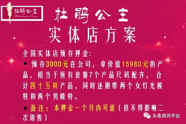 五,积分奖励 所有代理商直接销售399元一套产品,奖励3990积分,间接销售积分奖励分别为:特约市场50积分每套,一级市场100积分每套,总代市场150积分每套,CEO市场200积分每套,且积分可以累计,不归零,按一定比例复消,CEO可以按积分数量置换全款百万豪车(2000万积分奖励20万全款车,5000万奖励100万全款车)。 六,复消奖励 复消方式=积分+现金,(积分对应现金比例为10积分:1元)在商城购买产品。 公司每个月拿出来新增复消商城总业绩的百分之五十进行奖励。(其中的百分之三十奖励复消会员本人,其团队直接一级代理获得百分之二十奖励,其团队直接总代理获得百分之二十奖励,动态全球CEO共享百分之三十) 此外,杜鹃公主推出了实体店方案:预存3000元,拿价值15980元的产品。 ![]() 目前,杜鹃公主正通过各种招商会以及户外分享会拓展市场,其旗下已发展出世家系统等团队,而该系统的命名无疑会令人联想起在去年10月份注销的“无痕世家”公司。 医疗功效,违规宣传 在加盟杜鹃公主的各套餐中,标价为每件1699元的“公主之吻”塑身衣无疑是最能吸引眼球的一款。据微信公众号“杜鹃集团资讯”介绍,该款内衣含有火山能量石、动态负离子、锗元素和纳米银等材料,并附有医疗保健功效。 |