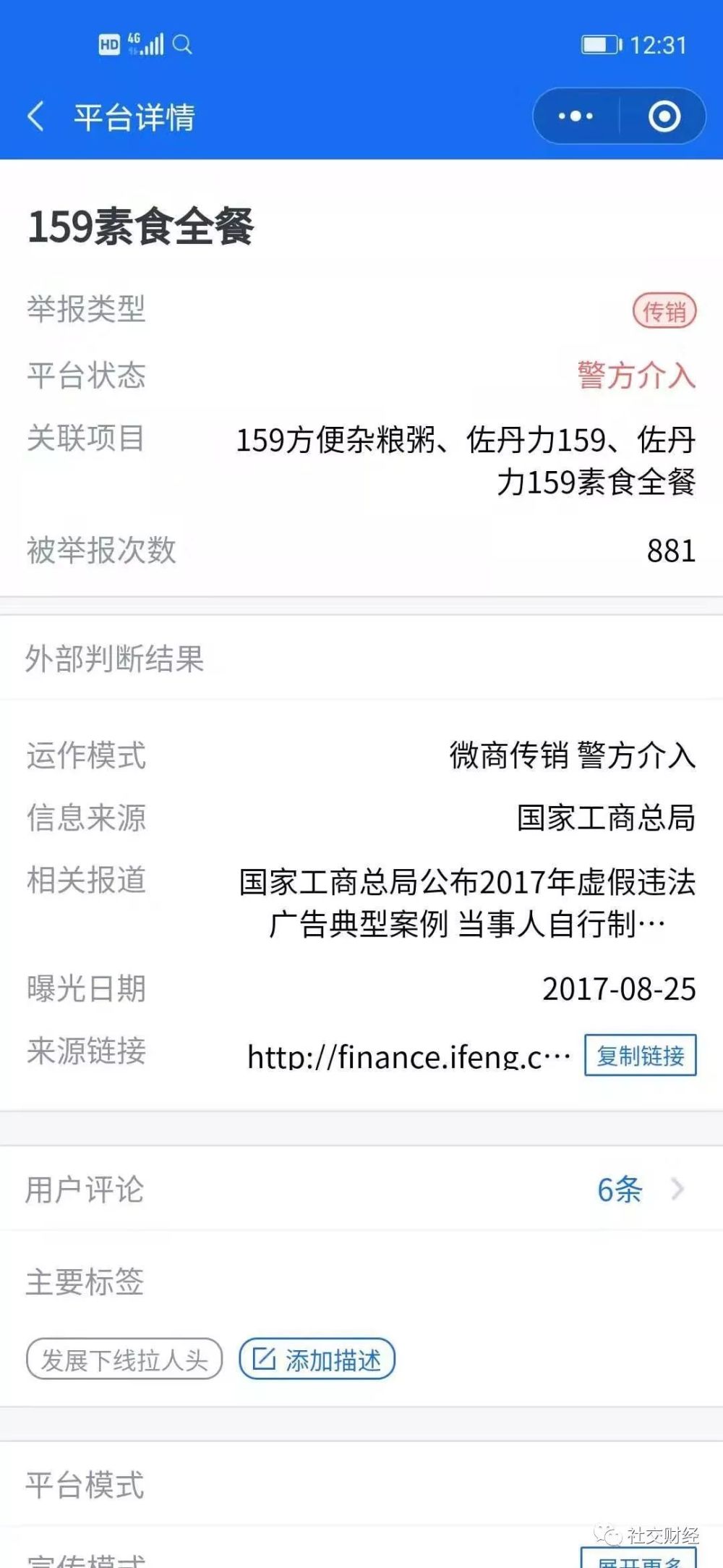 【直报网北京12月23日讯】(社交财经)近日,有消费者后台咨询一款名为“佐丹力159”方便杂粮粥是否能减肥治病?那么,“佐丹力159”方便杂粮粥究竟是什么?为何还能治病?是否涉嫌虚假宣传呢?本文仅出于消费预警发布,希望消费者擦亮眼睛。 据了解,销售“佐丹力159素食全餐”产品的是一家名为佐丹力健康产业集团(吉林)有限公司的企业,该公司成立于2013年9月24日,曾用名吉林省佐丹力生物科技有限公司、长春佐丹力生物科技有限公司,公司注册资本1.59亿元,实缴0元,股东有法定代表人韩丹和张香云。 代餐粉能治病被指虚假宣传 代餐粉,顾名思义,是替代掉主食的一种粉状食物。那么,一款代餐粉产品是否能减肥与治病?并不是靠嘴说的,首先该产品是否具备减肥与治病的功效,该功效是否在“国家食品药品监督管理总局”官网有备案;其次,该生产企业是否具备生产保健食品与药品的资质。我们查询发现,佐丹力公司并不具备以上条件,其产品生产许可证编号属于“长春广和堂医药科技有限公司”,其允许生产的产品范围也为固体饮料。 但是在网上有众多以“佐丹力159”素食代餐的群,这些群的成员主要由佐丹力159的销售者和使用者组成,这些群体每天都在探讨或称称赞佐丹力159的功效和作用,在他们的口中,瘦身、消痘,甚至高血压、高血脂、糖尿病,以及腰腿疼痛,在服用“159”一段时间后都消失了。 如果有消费者吃过“159”后身体出现不适,如肠胃不适、腹泻和浑身酸痛,或者头晕等等,则被“微店长”统一解释为“是身体正在调养的正常反应,一定要坚持服用。”与此同时,在佐丹力各级分销代理的链条中,还存在着名为“祥稷行”的系统,他们在喜马拉雅fm里上传的课程讲解,同样也是在为佐丹力159背书,音频中的内容于字里行间也无外乎是在告诉听众“去医院不如吃佐丹力”、“做佐丹力可以让你荣华富贵”。 事实上,关于佐丹力159虚假宣传一事,已由来已久,2017年8月25日,国家工商总局公布了15个虚假广告案例,其中就包括了“吉林省王沿华利用微信发布159素食全餐违法广告案”。 而据《广告法》与《食品卫生法》等相关规定,食品广告不得出现与药品相混淆的用语,不得直接或者间接地宣传治疗作用,也不得借助宣传某些成分的作用明示或者暗示该食品的治疗作用。即使是保健食品,广告语中也不得含表示功效、安全性的断言或者保证;涉及疾病预防、治疗功能;声称或暗示广告商品为保健健康所必需等内容。 经销商涉传被洛阳警方控制 今年7月26日,河南省公安厅开展的缉捕在逃境外经济犯罪嫌疑人专项行动(代号“猎狐2019”)对外公布4起典型案例,其中,洛阳市孟津县公安局对佐丹力健康产业集团(吉林)有限公司、金谷道经贸有限公司组织、领导传销活动罪立案一案备受关注。 据了解,2015年3月犯罪嫌疑人谢某、郑某以网络拉人头、多层分级返利或计酬的方式,推销“佐丹力”159素食全餐(方便杂粮粥),案件涉案金额巨大、涉案人员众多。经查,谢某、郑某已于案发前出逃韩国。为促使谢某、郑某尽快到案,办案民警一方面对犯罪嫌疑人及其重要社会关系人及时采取侦控措施,同时对获取的相关数据进行分析研判,积极开展境外查缉准备工作;另一方面主动与谢某、郑某的家属联系沟通,对其进行法制宣传及政策教育,取得家属的信任和支持。 通过办案民警耐心细致的工作,谢某、郑某夫妇认识到投案自首是唯一出路,并主动联系办案民警表示愿意回国投案。2019年7月16日谢某、郑某在郑州新郑机场被办案民警安全押解带回。 此前就有不少媒体质疑佐丹力健康产业集团(吉林)有限公司涉嫌传销。据了解,佐丹力159全国统一零售价为159元/盒、优惠顾客单价120元/盒,做VIP代理需要一次性投入3.6万,购进4000盒产品,单价90元/盒,同是VIP的客户介绍一位VIP,会有每盒5元共2000元的奖励,转介绍5个VIP,销售累积8000盒达成微店长资格(享受进货单价72元/盒),微店长A如果培养一个微店长B,享受该微店长进货的10元/盒的奖励,所有VIP客户隶属微店长,进货通过微店长对公司。 针对“佐丹力159”此种运营模式,中国政法大学资本金融研究院网络经济研究中心主任武长海曾向媒体表示,“佐丹力159”的销售模式涉嫌违规行为,“通过拉人头形成金字塔销售模式,上线吃下线”,有一定的典型性。 消费者在人民网留言举报佐丹力159涉嫌传销 而另据灵鲲金融风险查询举报中心显示,“159素食全餐”处于异常状态,平台状态显示“警方介入”,举报类型为“传销”,被举报次881次,截止2019年12月20日。 |