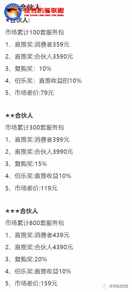 【直报网北京7月21日讯】(反传防骗联盟)据前瞻产业研究院发布的《中国大健康产业战略规划和企业战略咨询报告》统计数据显示,截止至 2019 年底我国大健康产业规模达到 8.78 万亿元,预计到了 2020年我国大健康产业规模突破10万亿元。未来五年(2019-2023)年均复合增长率约为12.55%,并预测在2023年我国大健康产业规模将达到14.09万亿元。 在这样的背景下,不少以大健康产业为名的品牌开始出现在大众的视野中,灸小白就是其中之一。灸小白是一款怎样的产品?其奖金制度该如何解读?为何上线不久却屡次遭到用户的投诉与质疑? 据官宣资料显示,灸小白就是一款4.0的AI智能艾灸仪,打破了传统艾灸的所有使用的时间、空间痛点,可以让每个人每个家庭方便和高频使用,很好的调理改善人体亚健康,提升人体免疫力。 ![]() 图片来源:天眼查 据天眼查显示,灸小白的主体运营公司是灸小白(上海)智能科技有限公司,成立于2020年12月29日,位于上海市松江区泗泾镇方泗公路18号2幢313室,注册资本100万,实缴不详,法人代表芦岩。 【没有天花板的收入?】 ![]() 据推广资料显示,灸小白分为999元的消费者、9990元的合伙人及荣誉董事三大级别,其中合伙人又分为一星合伙人、二星合伙人、三星合伙人,荣誉董事也分为金牌董事、钻石董事、皇冠董事等三个级别。 ![]() 加入合伙人条件 两大入口:①消费者:999 元;②合伙人:9990元 一、消费者:999元(注:消费者补差价8991可原点升级合伙人) 1、1套艾灸服务包 2、直推奖280元 二、合伙人:9990元 1、10套艾灸服务包 2、直推消费者319元 3、直推合伙人3190元 4、复购奖5% 5、伯乐奖10% 6、市场差价39元 注:消费者算一套艾灸服务包;合伙人算十套艾灸服务包 ![]() 一、合伙人 ★合伙人: 市场累计100套服务包 1、直推奖:消费者359元 2、直推奖:合伙人3590元 3、复购奖:10% 4、伯乐奖:直推收益的10% 5、市场差价:79元 ★★合伙人 市场累计300套服务包 1、直推奖:消费者399元 2、直推奖:合伙人3990元 3、复购奖:15% 4、伯乐奖:直推收益10% 5、市场差价:119元 ★★★合伙人 市场累计800套服务包 1、直推奖:消费者439元 2、直推奖:合伙人4390元 3、复购奖:20% 4、伯乐奖:直推收益10% 5、市场差价:159元 ![]() 二、荣誉董事 市场累计2000套艾灸服务包 培养两个直推★★★合伙人 1、直推奖:消费者479元 2、直推奖:合伙人4790元 3、复购奖:25% 4、伯乐奖:直推收益10% 5、市场差价:199元 6、平级补贴:20元 7、全国分红:30元/套 培养2个董事:21元/套 培养3个董事:14元/套 培养4个董事:6元/套 培养5个董事:3元/套 注:董事分红叠加计算 又增加了金牌董事分红12元、钻石董事9元、皇冠董事6元,这三个职称是拿线下订单的。 反传防骗联盟留意到,在介绍灸小白奖金制度的同时,该资料还宣称“我们公司永远做新零售行业规则的制定者,收入永远没有天花板!” 《禁止传销条例》第七条规定,下列行为,属于传销行为: (一)组织者或者经营者通过发展人员,要求被发展人员发展其他人员加入,对发展的人员以其直接或者间接滚动发展的人员数量为依据计算和给付报酬(包括物质奖励和其他经济利益,下同),牟取非法利益的; (二)组织者或者经营者通过发展人员,要求被发展人员交纳费用或者以认购商品等方式变相交纳费用,取得加入或者发展其他人员加入的资格,牟取非法利益的; (三)组织者或者经营者通过发展人员,要求被发展人员发展其他人员加入,形成上下线关系,并以下线的销售业绩为依据计算和给付上线报酬,牟取非法利益的。 从灸小白推广员公布的奖金制度来看,灸小白多级代理分销制度已远超法律的规定。且灸小白通过让代理商认购商品变相收缴门槛费,并通过发展会员给予返利的方式来鼓励代理商“拉人头”的经营模式均符合传销的行为特征,灸小白明显涉嫌传销。 尽管灸小白公司自2020年12月29日成立以来仅半年多的时间,但反传防骗联盟发现网络上用户对灸小白涉传的质疑不在少数: ![]() 图片来源:知乎 在知乎平台,一位用户提问“灸小白?是不是骗局?” 对此,有用户回答“身边有个阿姨天天给我发,会员推广,先交钱买货,然后开会画大饼,让你拉更多的人买货做经销商。还拿美团滴滴支付宝微信举例子,很多逻辑都经不起推敲,概念混淆,逻辑混淆。” 【兜售原始股遭举报】 在查询灸小白相关资料的过程中,反传防骗联盟发现灸小白平台除了运营模式涉嫌传销遭用户质疑外,最惹人争议的还有其涉嫌兜售原始股: ![]() 一份盖有“灸小白上海智能科技有限公司”公章的《关于激励经销商的承诺书》显示: 为了激励灸小白项目的经销商团队,我们自愿承诺:如灸小白项目公司未来成功上市(包括在沪深A股、港股、美国纳斯达克或纽交所等任一证券市场成功上市),且灸小白项目公司上市后的市值达到或超过人民币两仟亿元时,我们将对公司的部分经销商实施“福报回馈计划”——即对前10万名经销商整体进行一次性奖励,我们自愿减持按减持时的市值价值人民币50亿元的灸小白项目公司的股票(需按交易所的规则减持),所得税后收益一次性无偿赠与给灸小白项目公司前10万名的经销商(须为有效在册经销商,具体操作细节另行公布)。 据该《承诺书》显示,灸小白为了激励旗下经销商发展下线,愿意减持市值50亿元的公司股票。对此,反传防骗联盟不禁感到好奇,一家成立不到7个月,注册资本仅100