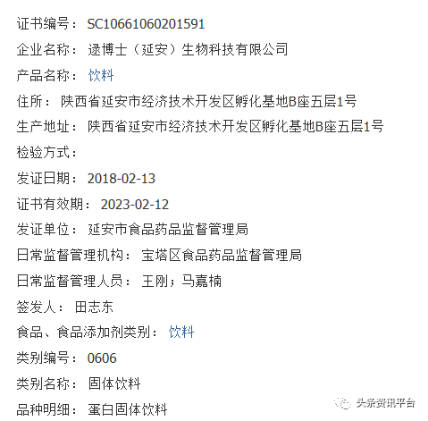 各种功效保证,更是屡见不鲜,如下图: ![]() 而实际上,逯博士名下的两款被推广人员称之为“全氧细胞还原方案”的餐包仅是普通食品,并非保健食品和药品。因此,上述宣传材料含有不科学的表示功效的断言和保证,将涉嫌虚假宣传。 ![]() ![]() 据产品外包装显示,该产品的生产商是逯博士(延安)生物科技有限公司,生产许可证编号为SC10661060201591,经查,该产品属于固体饮料类别中的蛋白固体饮料。 ![]() 在淘宝的搜索栏中输入关键词“逯博士”后,我们也发现了相关产品的存在,分别有售价为740元的(逯博士植物蛋白固体饮料,又称逯博士体重管理方案),售价为745元的(逯博士植物蛋白固体饮料,又称逯博士营养补充方案),以及售价为499元的(源周绿营养素固体饮料,也称营养优碳伴侣),销售相关产品的卖家店铺名为“逯博士官方企业店”,调查发现,这些产品的生产许可证编号都一样,皆为SC10661060201591。(这三种产品和全氧细胞还原方案在包装和产品规格上有所出入,但都属于植物蛋白固体饮料,且许可证编号也完全一致) ![]()