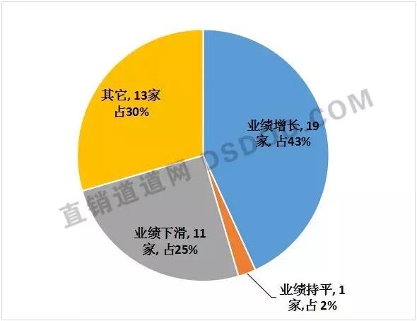 虽然业绩榜前六位的企业纷纷出现了业绩下滑,不过2016年,直企业绩增长仍是大趋势。在统计的44家直销企业中,与2015年的业绩相比,有19家企业业绩都有不同幅度的增长。从增长率来看,有12家企业实现50%以内的业绩增长,2家企业实现了50%~100%的增长,尚赫、罗麦、卫康、欧瑞莲、长青等5家企业的业绩增长率超过100%。
