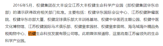 原名朸健,关联权健 江苏菌钥生命科技发展有限公司原名江苏朸健生命科技发展有限公司(2019年4月更名)。 ![]() 有资料显示,江苏朸健生命科技发展有限公司作为权健生命科学产业园中最为重要的一部分,成立于2015年9月,是一家立足于健康产业的大型中药发酵和酵素产品生产的民族企业,集果蔬培植、产品研发、中试孵化、生产制造、医学健康研究、国学养生、国际会展中心等于一体的综合性生物制造基地。 ![]() 也有新闻称,该公司属于权健集团于2016年在大丰设立的江苏大丰权健生命科学产业园(即权健集团华东总部)之内。 ![]() 权健事发后,“猫财经”曾以《权健倒了,可你不知道还有个朸(li)健》为题对权健和朸健之间的关系进行揭露,并且据当时的朸健官网显示,朸健的上市产品均为权健“自然养生观”销售的产品,由此,足见两者关系之密切。 ![]() (图片来源:猫财经) 另外值得一提的是,关于“福瑞购”,除了在广东设有公司外,在天津也有一家,其名为福瑞购(天津)电子商务有限责任公司,成立于2017年,法定代表人朱德军,是权健集团有限公司的子公司。 回首福瑞购的前世今生,故事的开端要从两三年前开始说起。金财互联全资子公司方欣科技有限公司曾于2018年期间,与权健公司控股子公司福瑞购(天津)电子商务有限责任公司签订了“福瑞购平台项目”方欣云平台服务及基于大数据和供应链支撑的应用软件开发、系统集成服务合同,合同金额为802.65万元。2019年1月7日,金财互联发布公告称,该项服务合同在正常履约中,福瑞购平台项目完成度90%,项目收款进度40%,公司及各子公司的生产经营均不受权健公司相关事项的影响。 ![]() 顺带一提,据百度百科显示,束昱辉本人出生于江苏省盐城市大丰区,而江苏菌钥公司和京诚昱丰公司的注册地址也都在盐城市大丰区,而说到盐城,当地球队与权健的关系自然也不得不提。 2017年年末,中乙球衣官方赞助商发布了各支球队2018赛季的新球衣时,也引起了一阵舆论风波。是时,盐城鼎立队胸前的“江苏朸健”四个字,让盐城鼎立是“权健二队”的传闻就此甚嚣尘上,这次公开叫板足协的行为也让束昱辉的声望在某种程度上达到了顶点。 ![]() 2016赛季前,福建超越被甩卖到了江苏盐城,当时由于江苏朸健有入股盐城鼎立,这笔转让交易遭到了足协调查。按照足协的相关规定,任何情况下为确保比赛的完整和公平性不受到破坏,任何自然人或法人(包括控股公司和子公司),不能以任何手段和方法同时控制一家以上俱乐部、拥有一家以上俱乐部的股权或对一家以上俱乐部的决策足以产生重大影响。 ![]() 由于当时权健集团经理沈建宏是江苏朸健的股东,足协要求相关双方在规定时间内说明具体情况,江苏朸健不得已退出控股盐城鼎立俱乐部。结果联赛开始前,与权健关联紧密的丰东股份(后更名为金财互联)宣传将给予盐城鼎立足球俱乐部500万元的资金赞助,盐城鼎立在发布会上称将与权健展开青训等方面的多项合作。但很快,在足协的施压下,两家俱乐部被迫宣布放弃合作。在这样的背景下,盐城2018赛季球衣的胸前广告的出现,无疑再度证明了权健、朸健之间的不凡关系。 说完了权健与朸健,下面我们不妨再从字面意思上回顾一下京诚昱丰公司名称里的这四个字背后暗藏何种玄机。想当然耳,京是束长京的京,昱是束昱辉的昱,从望文生义的角度来看,这四个字就意味着“儿子诚信经营,老子事业丰收”。 |