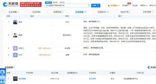 【直报网北京6月13日讯】(天眼查)近日,天眼查显示,杭州谦寻电子商务有限公司新增简易注销公告,公告期自6月7日至26日。 ![]() 公开资料显示,谦寻电子商务公司成立于2016年11月30日,注册资本100万元,法定代表人为薇娅(黄薇)丈夫董海峰,董海峰持有该公司51%股份,是公司大股东、实际控制人。该公司业务为“谦寻直播”(淘宝直播电商平台),核心团队为由奥利(谦寻直播CEO)、薇娅(联合创始人)、谢晓卫(谦寻直播总经理)、林森(谦寻直播监事)组成。 ![]()