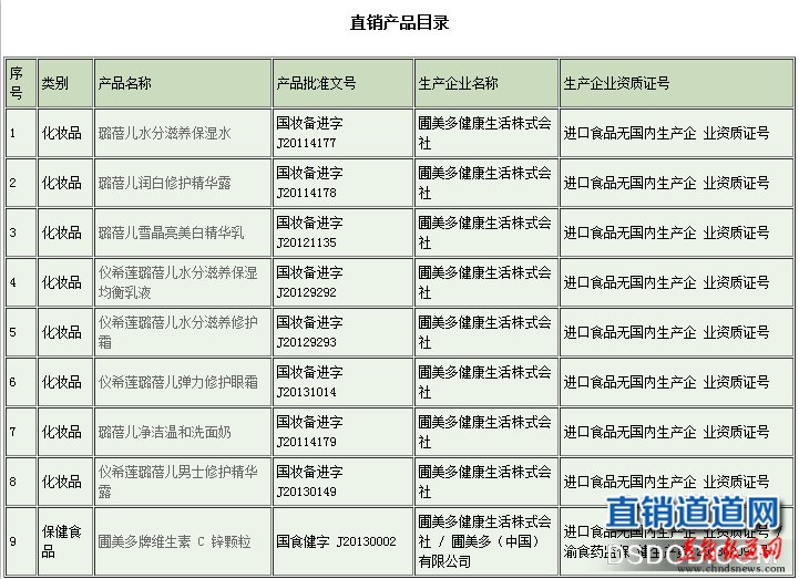 虽然主打食品是有机面食类,但是在信息披露网站上的产品为化妆品和保健食品,详情如下: