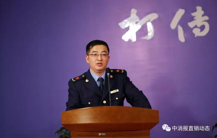 图为程彤伟先生在活动现场致辞。 直销企业保护消费者权益联盟轮值理事长、新时代健康产业(集团)有限公司副总经理程彤伟先生在活动现场做了致辞。他鼓励直销企业行动起来,在做好规范经营工作的同时,还要配合政府监管部门,积极投身到禁传宣传工作中来,为禁传宣传工作尽责尽力。