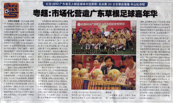 直报网北京6月28日电(本站记者报道)记者从富迪官方网站获悉,红冠2012广东省五人制足球城市冠军杯(总决赛)24日在肇庆圆满落幕,最终中山队夺冠!