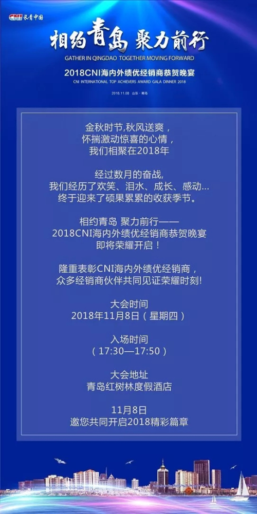 (原标题:长青海内外绩优经销商恭贺晚宴11月8日举行)