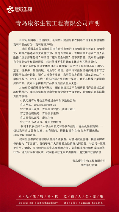 【直报网北京1月20日讯】(康尔) ![]() (原标题:康尔生物就网络不实信息及未经授权销售发声明) 责任编辑:一一 【特别声明:部分文字及图片来源于网络,仅供学习和交流使用,不具有任何商业用途,其目的在于传递更多的信息,并不代表本平台赞同其观点。版权归原作者所有,如涉版权或来源标注有误,请及时和我们取得联系,我们将迅速处理,谢谢!】 解读新闻热点、呈现敏感事件、更多独家分析,尽在以下微信公号,扫描二维码免费阅读。