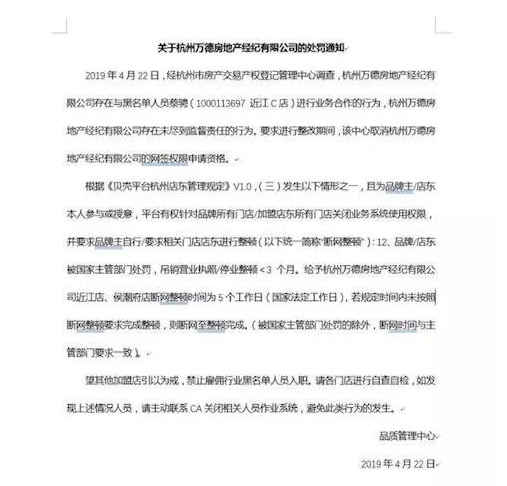 万德房地产与贝壳找房有何关联?据了解,万德房地产加盟了德佑,线下店装修、招牌,房产信息资源池等,都由德佑输出解决方案。而德佑又入驻了贝壳找房,接受其监管。 链家系一荣俱荣,一损俱损。贝壳找房并未在浙江成立分公司,靠天津母公司控股浙江链家,并在浙江经营业务。或许出于这一原因,贝壳找房及德佑加盟商使用的都是浙江链家的网签系统。德佑的加盟商招人不慎,将整个浙江链家都推入了房管局监管视线。