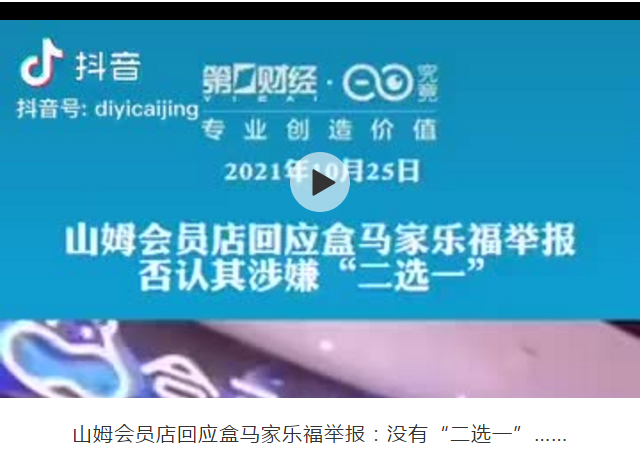 【直报网北京10月26日讯】(市场资讯) 划重点: 1、虽然山姆会员店否认“二选一”规定,但仍有供应商证实,该行为确实存在。实际上,山姆店施压供应商是“惯犯”,此前曾向物美会员店尚佳“动手”,成为尚佳失败的因素之一。 2、山姆会员店单店日营业额可超过3000万,与传统超市日均50万上下的营业额,差距甚大。众多品牌先后入局会员店,行业“内卷”凸显。 3、家乐福也“不是省油的灯”。多位业内人士证实,此前在业内率先收取供应商入场费、堆头费的就是这家企业,其在业内并不受待见。 筹划已久的家乐福会员店,在开业首天却迎来供应商的“大撤离”。家乐福将这一切归结于山姆会员店,称供应商遭遇“二选一“恶性竞争。 作为山姆的母公司,沃尔玛发文否认此事。但是,仍有众多零售商、供应商站出来确认“二选一”的真实性。 据行业内内部人士证实道,某食品供应商确实遭遇了“二选一”,开业初期,山姆要求必须做出选择,并且要求该供应商在另一家门店新店开业当天,买光由其供应的商品。 商业模式分析师张飞透露,“一家山姆会员店一天的营业额都在3000万-5000万之间”,这与传统超市如大润发、沃尔玛单店日均50多万的业绩,悬殊太大。 所以会员店在今年,尤其受到追捧,内卷也随之而来。 施压供应商,山姆是“惯犯” 10月22日深夜,家乐福突然发文称,其会员店开业首日就遭遇了大量品牌供应商不再合作的意愿,因为其直接竞争对手给这些供应商下了“二选一”的规定,即如果要与家乐福会员店合作,则不能再与对手会员店合作。事发后,在会员店同样有布局的盒马也发出消息称,遇到过同类状况。 盒马x会员店总经理长隐透露,从去年10月首店开业至今,盒马x会员店也长期遭遇类似情况。此外,在上海以外的城市,也有供应商迫于压力停止了与盒马x会员店的合作。基于此,盒马x会员店与家乐福会员店将在采购层面保持密切沟通,共同努力破解目前正在面临的局面。 迫于多方压力,山姆会员店母公司沃尔玛回应称,到目前为止,没有看到有关方提供任何直接或间接的事实,表明山姆会员店存在所谓的“二选一”问题。希望有关方能从事实出发,停止扰乱市场秩序的行为,专注自身经营,让更多消费者受益。