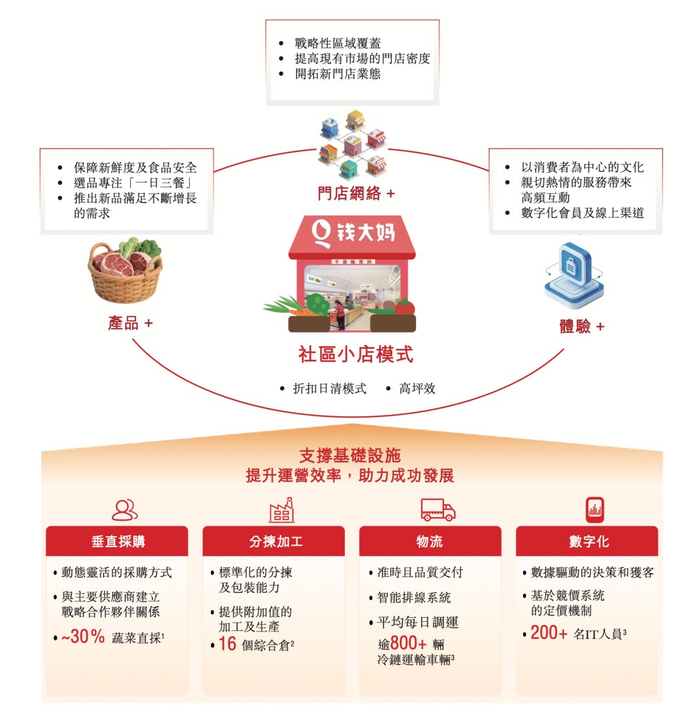 ![]() 【直报网北京1月14日讯】(IPO早知道)2024年,钱大妈的GMV达148亿元。 据IPO早知道消息,钱大妈国际控股有限公司(以下简称“钱大妈”)于2026年1月12日正式向港交所递交招股说明书,拟主板挂牌上市,中金公司和农银国际担任联席保荐人。 成立于2014年的钱大妈一直致力于为消费者提供高度新鲜、高质价比的产品与聚焦“一日三餐”需求的便捷购物体验。尤其是,钱大妈在行业中首创“折扣日清”销售模式(以下简称“折扣日清模式”),严格践行“不卖隔夜肉”标准并应用于所有生鲜产品供应。 在战略选择上,钱大妈率先在华南地区布局并将其打造成标杆。根据灼识咨询的资料,按2024年生鲜产品GMV计算,钱大妈是华南地区社区生鲜零售市场的绝对领导者,GMV约为98亿元,是第二大市场参与者的2.8倍。而后,钱大妈战略性地选择了华东、华中和西南等区域市场,以复制其已经验证的商业模式,现已在长沙与武汉等华中地区核心城市、重庆与成都等西南地区核心城市以及中国港澳地区的社区生鲜产品零售连锁行业市场份额均排名第一。 ![]() 截至2025年9月30日,钱大妈的门店网络包括覆盖中国14个省、直辖市和特别行政区的2,938家社区门店,拥有1,754名加盟商。同时,通过微信小程序、App等自有平台以及第三方外卖配送平台,钱大妈亦已建立了线上销售渠道。 根据灼识咨询的报告,在中国社区生鲜产品零售连锁行业中,以生鲜产品的GMV 计算,钱大妈连续五年位列第一。2024年,钱大妈的GMV达148亿元。 具体拆解来看: 在门店选址上,钱大妈主要围绕大中型社区,距目标消费者群体步行距离500米内的地点,因此相对于传统菜市场和超市距离消费者更近。同时,门店网络的精细化布局也是钱大妈规模优势的核心支撑——钱大妈优选产品组合打造高坪效小店(通常约为40平至80平),将门店SKU控制在400-500个,呼应快生活下的多元消费需求与便利追求。2024年,钱大妈单店日销1.4万元,坪效约为商超行业的6倍、便利店行业的3倍,达到社区生鲜连锁行业整体水平的2倍。 在模式创新上,钱大妈的门店每日下午七点开始打九折,其后每30分钟额外再增加一折,直至晚上十一点三十分剩余产品免费赠送,以确保门店的所有生鲜产品于到货当日出清,这从根源上降低库存损耗与经营风险,形成与社区居民的深度消费信任,构建起品牌壁垒。 当然,之所以能支撑折扣日清模式高效运转,钱大妈搭建“田间到餐桌”的全链路供应链基础设施——招股书显示,钱大妈全国16座仓储综合仓均配备恒温系统,仓储总面积超22万平方米,串联起深度产地直采网络。与120多家物流企业合作,日均调运冷链车超800辆,实现“枝头采摘-门店上架”最快24小时直达,其中猪肉从屠宰场到餐桌仅需6小时,同时绝大多数生鲜产品在综合仓内周转时间不超过12小时,远低于行业平均的2-4天,打破传统农业产业链条长、环节分散的限制。 此外,钱大妈自成立之初就将全流程数字化运营作为其核心战略——截至2025 年9月30日,钱大妈的IT团队拥有超200人,且部分核心数字化系统为自研。目前,钱大妈已建立复杂的大数据管理平台,先进的数字化系统让其实现了从上游采购至下游终端销售的数据打通,实现全流程智能管理,从产品采购、品控、仓储物流、门店管理和产品销售等各个方面全面提升运营效率。 财务数据方面。2023年和2024年,钱大妈的营收分别为117.44亿元和117.87亿元,2025年前三季度的营收为83.59亿元。 2023年和2024年、以及2025年前三季度,钱大妈的毛利率分别为9.8%、10.2%以及11.3%;经调整净利润分别为1.16亿元、1.93亿元以及2.15亿元。 根据灼识咨询的资料,中国居民高密度聚集居住于社区的特点使得社区店店型成为颇有吸引力的零售场景。2024年,近60%的生鲜产品零售在社区场景中完成,占据生鲜产品消费的绝对主流,中国社区生鲜零售市场蕴含着巨大的增长机遇。同时,2024年社区生鲜产品的线下业态连锁化率仅44.7%,预计在2029年将达到56.7%,社区生鲜产品零售连锁业态预计未来5年的复合增长率将达到15.5%,即钱大妈正处于一个规模巨大、高速发展的赛道中。 成立至今,钱大妈已获得兼固资本、和君资本、启承资本、高榕创投、弘章投资、基石资本、泰康人寿、光源创新基金、正瀚投资、和智投资等知名机构的投资。IPO前,启承资本持有钱大妈16.6%的股份,为最大机构投资方。