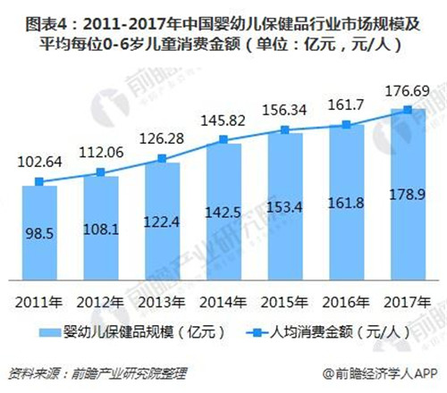 【直报网北京9月30日讯】(前瞻产业研究院)市场规模持续扩大,国内婴幼儿保健品在儿童保健品市场占比超40% 人们生存环境出现多种干扰因素,越来越多的父母增强了对孩子婴幼儿时期的健康保护。全球婴幼儿保健品市场规模不断扩大,2017年达到150.6亿美元。 ![]() 目前,全球婴幼儿保健品呈现较为明显的区域特征,亚太地区是目前全球婴幼儿保健品最大的消费市场,2017年在全球市场中占比达到43%,美洲市场排在第二,占比31%。 ![]() 近几年,国内儿童保健品产品的需求一直保持快速增长。2017年国内儿童保健品市场规模达到425.7亿元,其中婴幼儿保健品规模约178.9亿元,占比42.02%。 ![]() 婴幼儿保健品人均消费上升,增强免疫力类产品地位突出 婴幼儿保健品市场规模从2011年的98.5亿元增长到2017年的178.9亿元,按各年国内0-6岁儿童人数来计算,2017年,婴幼儿保健品人均消费金额升至了176.69元/人。 ![]() 健保产品定义为能够促进儿童身体及智力生长发育的营养素补充产品,分促进生长发育、改善营养性贫血、辅助改善记忆、改善胃肠道功能、增强免疫力等五大类。2017年我国增强免疫力婴幼儿保健品为主要市场,销售规模约29.97%,占比17%;促进消化型规模26.37亿元,占比15%;鱼肝油类20.68亿元,占比11%;其他(如钙剂等)101.88亿元,占比57%。 ![]() 低糖、安全、膳食补充为产品主流趋势 前瞻产业研究院认为,低糖、安全、膳食补充为当前婴幼儿保健品主流趋势。 ——低糖 低糖、无糖是产品发展的趋势之一,欧美国家对软饮料征收糖税就是一个很好的例证。消费者已经意识到糖摄入过多会引起肥胖、糖尿病、其它慢性疾病等,因此对含糖量高的产品很是担忧,尤其是儿童类产品。目前,许多生产商开始尝试降低产品中的含糖量,多数是以天然甜味剂代替人工糖的使用。 软饮料是降糖趋势最明显的一个产品品类。全球新推出的软饮料产品中的18%主打“低糖”、“不含糖”、“无添加糖”等声称,而北美地区的降糖产品高达22%。果汁、果汁饮品、能量饮料目前主打降糖趋势,因为这些品类是儿童相对消费最多的产品。 ——安全 消费者最关心的产品特性就是安全,其中包括清洁标签和营养成分。对于儿童来说,其更喜欢不同形状、色彩鲜明的产品,尤其是使用卡通人物的产品。尽管父母和孩子对产品有不同的口感体验,但生产商需要的关注的是寻找平衡点,以研发能够同时吸引这两者人群的产品。 近几年,随着消费者健康意识的改变和二胎政策的放开,我国儿童人口不断增加,儿童营养产品的需求也在不断扩大,但目前我国的儿童产品以进口居多,国产品牌占据少数,国产品牌在功能方面还需更加细分化。目前,国内不少药企已经进军儿童健康市场,如何更好的瓜分这杯羹值得企业的思考。 ——膳食补充剂