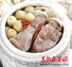 【直报网7月15日讯】(广州日报)今日靓汤 关键词:健脾 养心 益气 中医曰:“长夏宜养脾”。自古以来,莲不但是文人墨客的所爱,也是中医药家偏爱的中药,更是寻常百姓日常生活的滋补食品。古人说吃莲子能返老还童,长生不老。其在健脾、养心、固涩以及消除疲劳等方面的药用价值,历代医书典籍多有记载。配以性味平和、健脾益智、养心益气的白糖参一起炖猪瘦肉,清润醇香,具健脾、养心、益气之功,为长夏时养脾的汤饮,且尤宜老人、少儿和女士的调理。 材料:莲子20克、白糖参10克、猪瘦肉100克。 烹制:各物洗净。莲子浸泡;猪瘦肉切小方块。一起下炖盅,加冷开水250毫升(约1碗量),加盖隔水炖两个半小时便可。进饮时方下盐,为1人量。小儿酌情减量。▲ (原标题:莲子白糖参炖猪瘦肉) 责任编辑:小昆 |