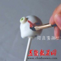 6. 眼球先森:在白巧未干时黏1个眼睛,用色素画出眼睛血管