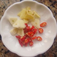 4. 锅内油热后下藕丁翻炒2至3分钟