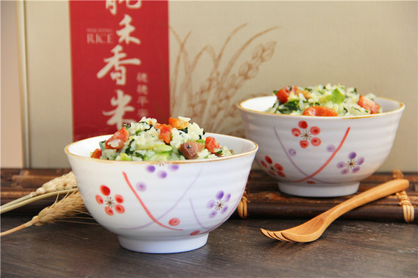 【直报网北京1月18日讯】(搜狐美食)记忆中,最好吃的炒饭,就是爸爸做的香肠菜饭,材料丰富,美味十足,红红绿绿,色相上就很诱人,卖相十足,香味四溢。每次都要炒上一大锅才够分。别看只是简简单单的炒饭,也是相当讲究的。米要好,最好选用香米,煮饭的时候,水要少,相对饭要干,最好颗颗分明。青菜要提前洗好沥干,不然一下锅一炒,水分会出来很多。香肠一定要用广式香肠,有肥油有精肉,甜甜的,咬起来口感十足。要是再加点咸肉,那就更丰富了哟~ 用来炒饭的米饭,一定要偏干,材料中会有水分出来,中和一下刚刚好。 【菜谱做法介绍】米饭适量,广式香肠2根,咸肉一小块,青菜500克,油一勺,盐适量,糖适量 1.将广式香肠和一小块煮熟的咸肉切成小丁状,备用 2.将青菜洗净后沥干,这步很重要,一定要沥干,青菜最好在煮饭前提前处理,沥干水 3.根据自己的需求准备米饭适量,饭要煮的偏干一些炒饭更好 4.起油锅,放入一大勺油,下香肠咸肉丁,下青菜碎,大火不断翻炒均匀,待青菜碎断生后,加入适量盐和糖调味 5.继续大火翻炒,均匀后加入米饭