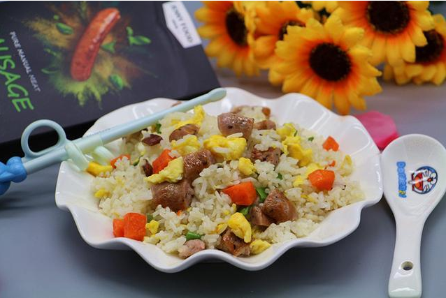 【直报网北京8月8日讯】(搜狐美食)南方人爱吃米饭,这是说白米饭,蛋炒饭确是在南北都颇受欢迎,尤其受单身一族的欢迎,因为其简单快手,鲜美无比,营养丰富,十分适合忙碌了一天,又不愿吃外面高油高糖的外卖食品的人们,先划一个重点,蛋炒饭一定要用隔夜饭才好吃,如果没有,起码也要彻底放凉了以后再炒,上班族们可以早上起床时煮好,出发前往冰箱一放,回来就可以直接炒。家中可以常备一些香肠,鸡蛋之类便于储藏又有营养的食物,这里推荐一款好吃的无添加无防腐剂的纯肉香肠,特别好吃。 珍妮珍馐纯肉香肠罗勒风味烤肠儿童零食肉肠早餐肠无防腐210g/6根 ¥46 购买 【香肠蛋炒饭】 用料:香肠两根,鸡蛋两个,胡萝卜半根,香菇两朵,豆角几根,盐适量 步骤: 1,蔬菜和香肠准备好。 2,香肠提前把锅里抹点油小火煎熟,大概一两分钟就可以。 3,蔬菜和香肠全部切小丁。 4,鸡蛋打入碗中。 5,搅打均匀。 6,鸡蛋下油锅煎熟,乘出来备用,锅内底油不要倒掉 7,加入蔬菜丁翻炒,硬质的难熟的蔬菜要先炒,如果有青菜之类的要放在最后炒。这里划第二个重点,家庭炒蛋炒饭的时候不要太大火,容易把米饭炒硬,只需全程改成中火去炒,米饭就会又香又软。 8,倒入米饭,鸡蛋和火腿丁一起翻炒。米饭要提前拨散开。 9,中火也可以把米饭炒的略微起焦,还不会硬邦邦。