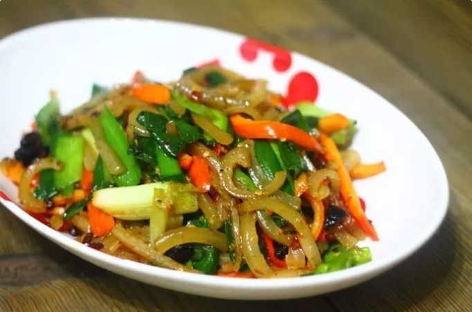 【直报网北京3月8日讯】(搜狐美食)肉皮售价很便宜,自己做又干净卫生,食物做好后想怎么吃就怎么吃。 这道菜出锅后,男人可以用来下酒,女人喜欢用来当下饭菜。 爆炒猪皮 做法: 肉皮250g、青蒜3颗、红彩椒1个、八角1个、花椒20粒左右、香叶2片、干红辣椒5个、生抽1勺、酱油几滴、高度白酒1勺、香醋几滴、食用油适量、盐少许 制作方法: 1、肉皮用眉毛夹处理干净表皮上的毛,用流动的水清洗干净后放冷水锅中煮5分钟左右捞出(表皮变色,肉皮用筷子能戳动即可) 2、焯水后的肉皮捞出,用清水冲洗干净表面的浮沫,沥干水份 3、青蒜和红彩椒分别清洗干净,青蒜切成3cm~5cm的段、红彩椒切丝备用 4、焯水后的肉皮切均匀大小的丝 5、锅里倒入食量的食用油,烧热后加入干红辣椒、八角、花椒、香叶等一起小火慢慢翻炒 6、炒至调味料散发出香味后加入肉皮一起翻炒 7、小火慢慢翻炒至肉皮表面出现微黄状态时加入高度白酒快速翻炒5~10秒后再滴入几滴酱油一起翻炒 8、炒至酱油均匀上色后加入青蒜白部分继续中小火慢慢翻炒 9、炒至青蒜白断生状态时加入青蒜叶和红彩椒一起翻炒,大约炒10秒左右后加入适量的盐、生抽、醋等调味翻炒均匀后出锅 小贴士: 1、肉皮下锅煮之前,用清水反复冲洗能有效减少毛腥味 2、用高度白酒替代酒料,炒出来的肉皮更香