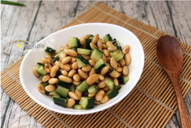 【直报网北京11月4日讯】(搜狐美食)这道小菜是我家餐桌上的宠儿,经常会做上一盆,佐餐做粥都很棒,做法很简单,一学就会。 黄豆是我们经常吃的食物,黄豆当中的蛋白质含量比较高,而青瓜当中的维生素含量是最高的。它俩搭配可以补充蛋白质,清火祛暑。黄豆我们都知道是很好的食物,素有“豆中之王”之称,被人们叫做“植物肉”、“绿色的乳牛”,可健脾,润燥消水、清热解毒、益气。黄豆中所含的卵磷脂是大脑细胞组成的重要部分,常吃黄豆对增加和改善大脑机能很有好处。黄豆含有植物性雌激素,能够减轻女性更年期综合征症状、延迟女性细胞衰老、使皮肤保持弹性、养颜、减少骨丢失,促进骨生成、降血脂等。在更年期的女性可以适当多吃黄豆制品,这盘小菜简单易做,很适合佐餐。 材料:黄豆,黄瓜,花椒,大料,盐,生抽,醋。 做法: 1,把黄豆充分浸泡开,放入锅里,加入花椒,大料,盐大火煮开,在小火煮上20分钟,就熟透了,大豆一定要熟透才可以吃,捞出晾凉,控干水分。 2,黄瓜洗净切成小丁,备用,买黄瓜的时候,尽量买绿瓤的更好吃,味道也会微甜。 3,把黄瓜加入到黄豆中,加入盐,生抽,醋充分拌匀。 4,最后加上几滴香油拌匀,就可以吃了,每次可以多做一些,吃的时候拌一下即可上桌,超级简单的一道小菜。 5,孩子和老人都要常吃,对于大脑很有益处,还可以补钙,真的是虽然家常,但营养却不容忽视。 峰儿话语: 煮黄豆的时候要把黄豆充分的泡发,这样煮的时候事半功倍,可以很快的煮熟。这样拌黄豆不可以用压力锅煮,压力锅煮就会煮的很过了,成豆沙了。