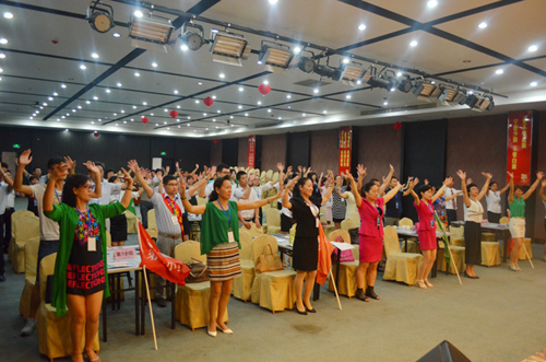 金日集团常务副总裁、金日制药(中国)总经理张阳辉出席了本次培训,并且百忙之中抽空为学员们零距离授课,其生动、幽默、接地气的授课风格深受学员欢迎,他还现场互动教学员们“握手”礼仪。其经典的“正在发生的未来”每次演讲都能有新的视角、新的角度展现给学员们,他说:“金日秉承爱家、敬业、泽天下的理念缔造了30几年的辉煌,这是历史,是当下,也是未来。”在传授“演讲的基本技巧”时,他指出,讲产品要抓住卖点,形象生动,直销就是不断地跟别人分享,用嘴巴、用心分享产品。