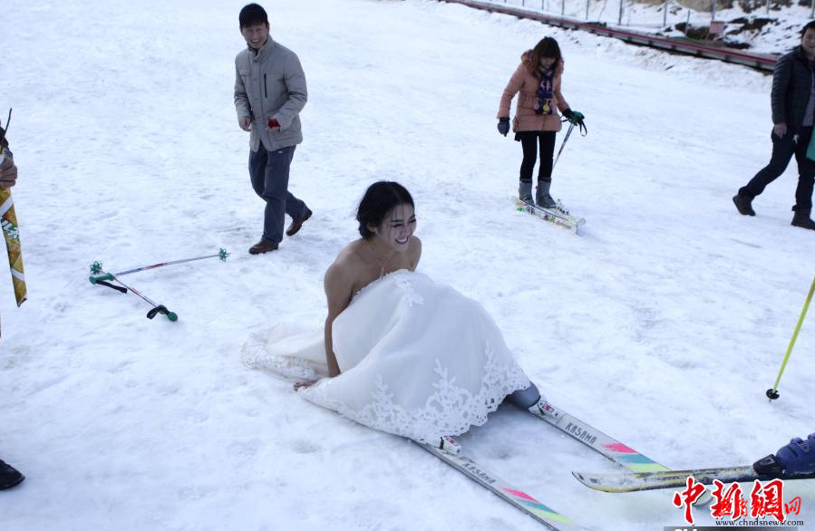 河南尧山现滑雪新娘美丽冻人寻找跨年之爱(3)