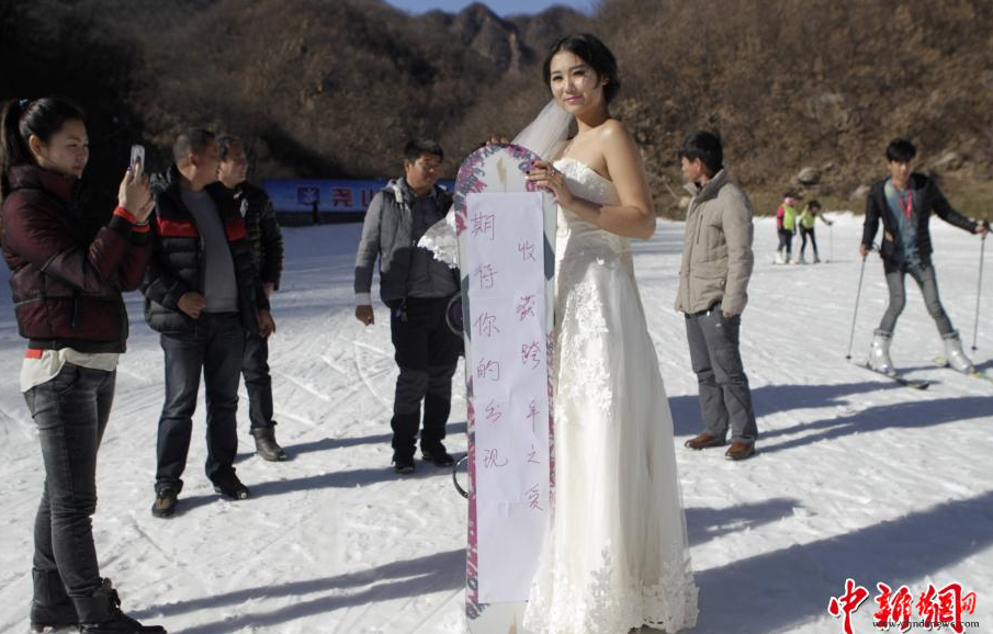 河南尧山现滑雪新娘美丽冻人寻找跨年之爱(4)