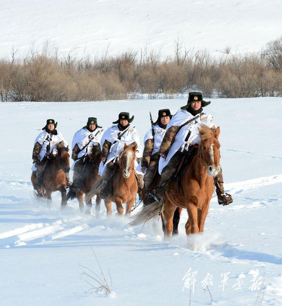 1月26日,内蒙古军区边防某团一连巡逻小分队骑马巡逻途中。