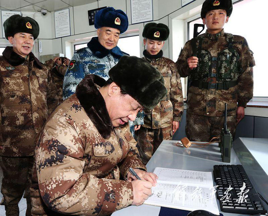 1月26日,习近平来到内蒙古军区边防某团三角山哨所,亲切看望慰问戍边官兵。习主席郑重地在观察登记本上签下名字。