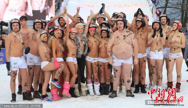 裸身雪橇世界锦标赛开幕 选手严寒中半裸参赛(4)